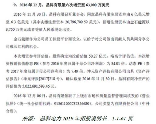 然后3个月后的2017年2月,晶科电力以15亿美元的估值从第三方筹集了2.85亿美元的额外资本 ,比李董事长向JKS收购晶科电力的价格高出多于200%。