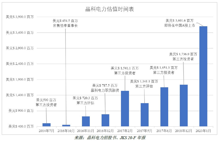 依靠JKS的资金支持,李董事长在三年内使晶科电力以私营公司的方式成长,以寻求在2020年第1季度实现36亿美元的首次公开上市估值(250亿人民币),比李董事长向JKS收购晶科电力的估值高692%!
