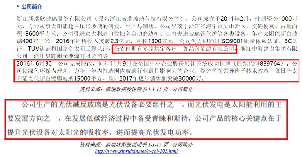 新瑞欣强调,从2014 年到16 年第一季度,该公司提供了JKS 光伏减反射玻璃总采购量的20%。