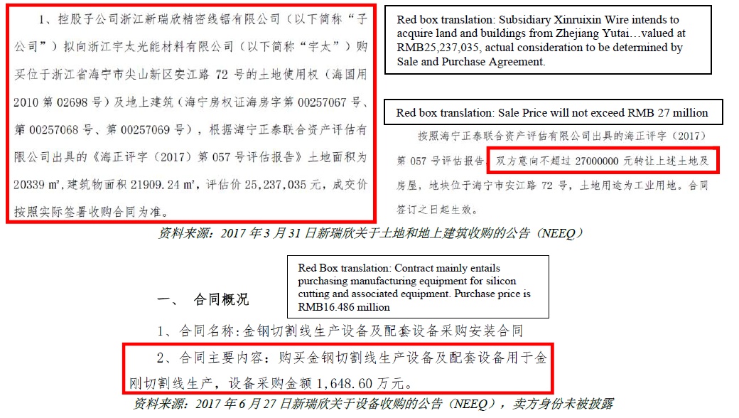 新瑞欣线锯立即进行了两次收购,以约600万美元(4,100万元人民币)的价格购买土地,建筑和金刚切割生产设备。