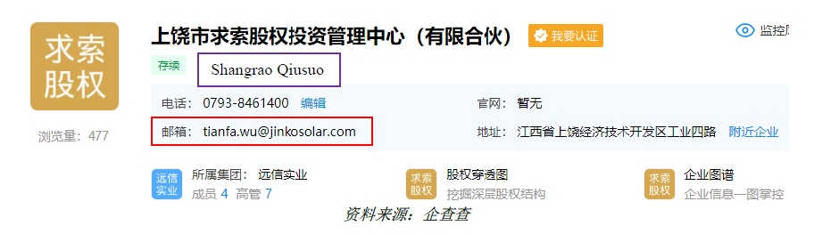 截至本报告发布之日,李仙华仍然通过其在上饶求索的100%股权和在海宁云顺的10.45%的股份,持有新瑞欣线锯35.1%的股权。而上饶求索的主要联系信息竟然显示JKS的员工。