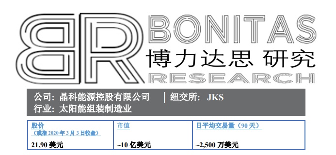 本文转自沽空机构博力达斯研究(BONITAS RESEARCH)针对晶科能源的沽空报告,报告中观点不代表智通财经观点,仅供投资者参考。