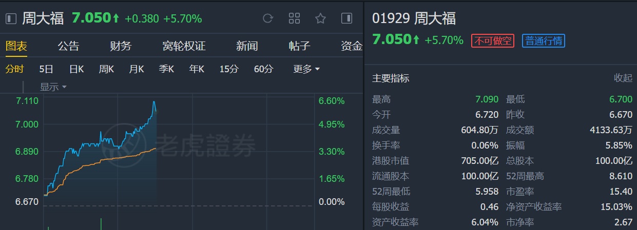 智通财经APP获悉,富瑞发布报告称,维持周大福(01929)“买入”评级,目标价8.97港元。