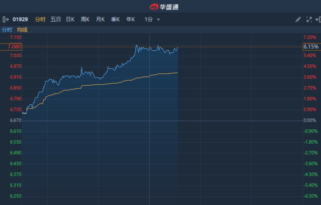 智通财经APP获悉,周大福(01929)获花旗看高至9港元,维持“买入”评级。该股涨幅持续扩大,截至13时32分,涨6.15%,报价7.08港元,成交额4851万。