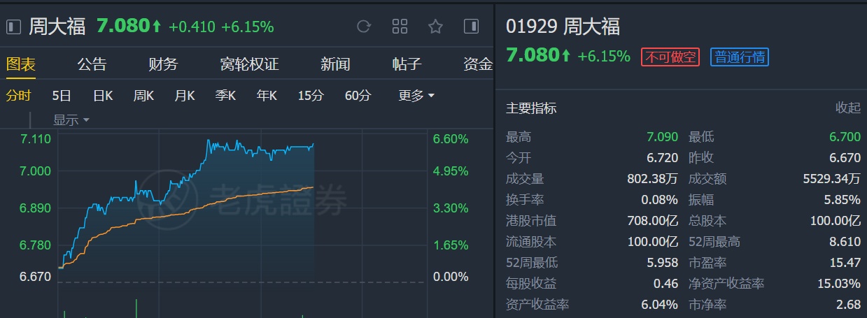 智通财经APP获悉,大和发布报告称,予周大福(01929)目标价为7.9港元及“买入”评级。