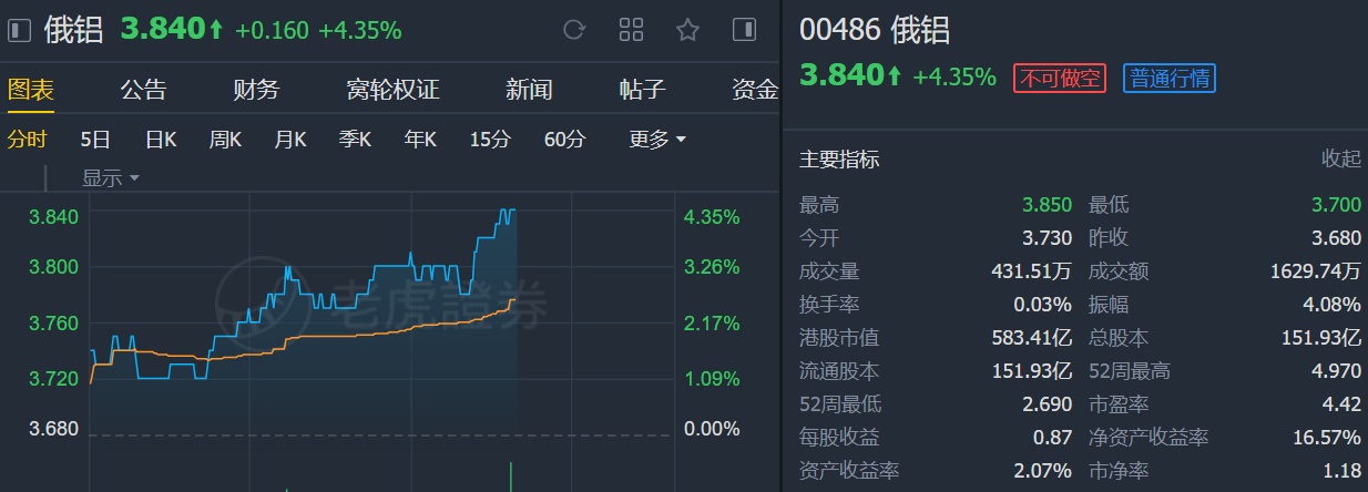 该行称,值得买入该股的原因包括“绿色”铝及环境、社会及企业管治(ESG)改善,以及增值产品销售及铝产量增长。该行称,大幅上调其目标价,主要是由于提高了Norilsk Nickel持股的估值。俄铝现价仅为2020年预测企业价值倍数(EV/EBITDA)0.5倍,故值得重估,以反映其持有Norilsk Nickel的价值。集团可受惠于钯金价格上升,因为Norilsk Nickel是全球最大钯金生产商。