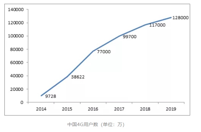 总体来说,我国拥有全球规模最大的4G用户数,截止2019年年底,4G用户总数达到12.8亿户,全年净增1.17亿户,占移动电话用户总数的80.1%。