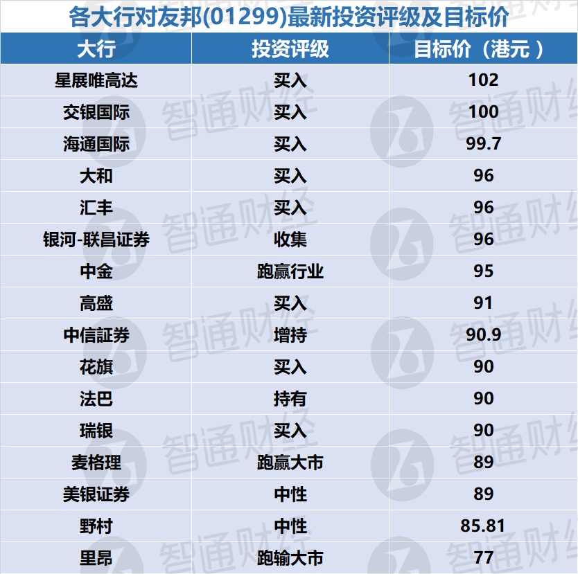 综合10家券商指,预期友邦受惠投资回报同比大幅改善(2018年因有关股权及房地产投资回报的短期波动的相关亏损为20.63亿美元),预计2019年纯利介于56.37亿美元至70.63亿美元,较2018年同期25.97亿美元,同比升1.17倍至1.75倍,中位数为62.72亿美元,同比升1.42倍。