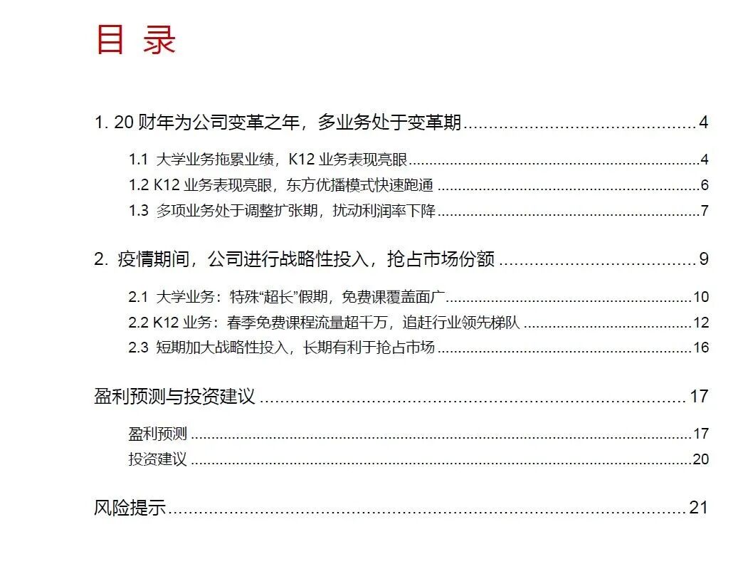 综上,我们看到短期产品线缩减,对公司收入产生了负面影响。但更可贵的是,体现了公司管理层极大的执行力,之前的战略在半年就有明显效果。随着后续产品录播转直播升级,客单价将稳步提升,一方面优质产品认可度提升,形成口碑推动人次长期提升,另一方面当前的免费低价课程有望拉动人次的后续转化,预计公司21财年,尤其下半年起,人次和客单价将稳步双升。
