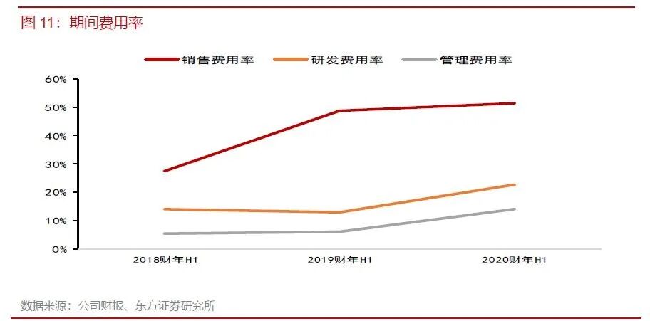 销售费用:上修20/21/22FY销售费用分别为58.2%/47.7%/38.6% (原预测48.9%/44.6%/39.3%)。
