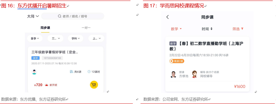东方优播是K12另一核心业务,更偏长期受益。由于东方优播类似传统线下小班连锁的方式,存在明显教师产能瓶颈,短期教师供给难以释放,因此受益相对较小。我们认为事件对优播的影响会更偏长期,提升家长的认知度,利于优播长期渗透率提升速度加快。此外,此次事件下三四线中小培训机构或明显出清,利于优播市场市占率提升。目前,我们看到优播在行业内率先开启了暑期班报名,在三四线教培无法复课的情况下,有望迅速抢占市场,我们会持续跟踪暑期报名情况。