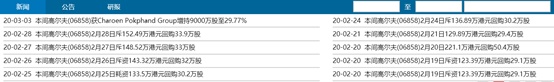 3月3日,公司再次发布一则正大平乐增加战略投资的公告表示,已经拥有9129.65万股股份(14.99%)大股东Charoen Pokphand Group Company Limited,其附属正大平乐控股和第一大股东Kouunn Holdings于3月3日订立协议,将通过向Kouunn Holdings收购公司9000万股股份增加其于公司的投资,交易价格为每股6.433港元,较2月28日收市价溢价高达42%。