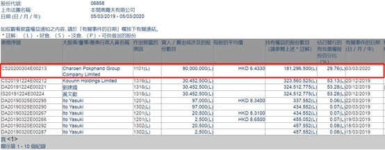 据了解,2018年首次大手笔投资本间的正大集团,拥有着雄厚实力且业务网络强劲,此次继续增持是对公司前景的坚定看好。而在交易过后,刘建国仍以超38%的持股占比位列第一大股东,继续担任公司董事长兼CEO职位,后续公司能够借助正大集团业务网络从事更深度的合作,加强协同效应。根据官方披露易网站显示,这笔涉及5.79亿港元的战略增资已经确立,Charoen Pokphand Group Company Limited目前持股比例已经提升至29.76%。