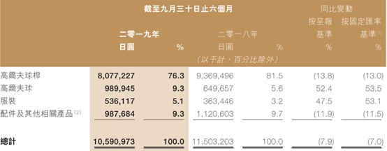 本间高尔夫中期业绩下滑,是高端转型叠加较多偶然性负面因素导致的。智通财经APP了解到,公司营收由高尔夫球杆、高尔夫球、服装和配件及其他组成,其中球杆营收占比能占到近80%左右。由于公司执行聚焦于BERES及TOUR WORLD球杆系列的高端化转型策略,战略性调整了入门级别的Be Zeal品牌,导致截止2019年9月低的六个月,公司球杆收入大幅减少13.8%至80.77亿日元,单就TOUR WORLD品牌而言营收增幅高达73.1%。同样收入录得11.9%同比下滑的配件及其他相关产品,也是因为转型期间重新设计产品线所致,目前公司高尔夫球和服装业务营收还是录得52.4%、47.5%的同比增长。而与营收一同受到聚焦高端化影响的还有毛利方面,再加上偶发性的4.97亿日元汇兑亏损净额大幅拖累,公司才出现的大幅盈转亏。