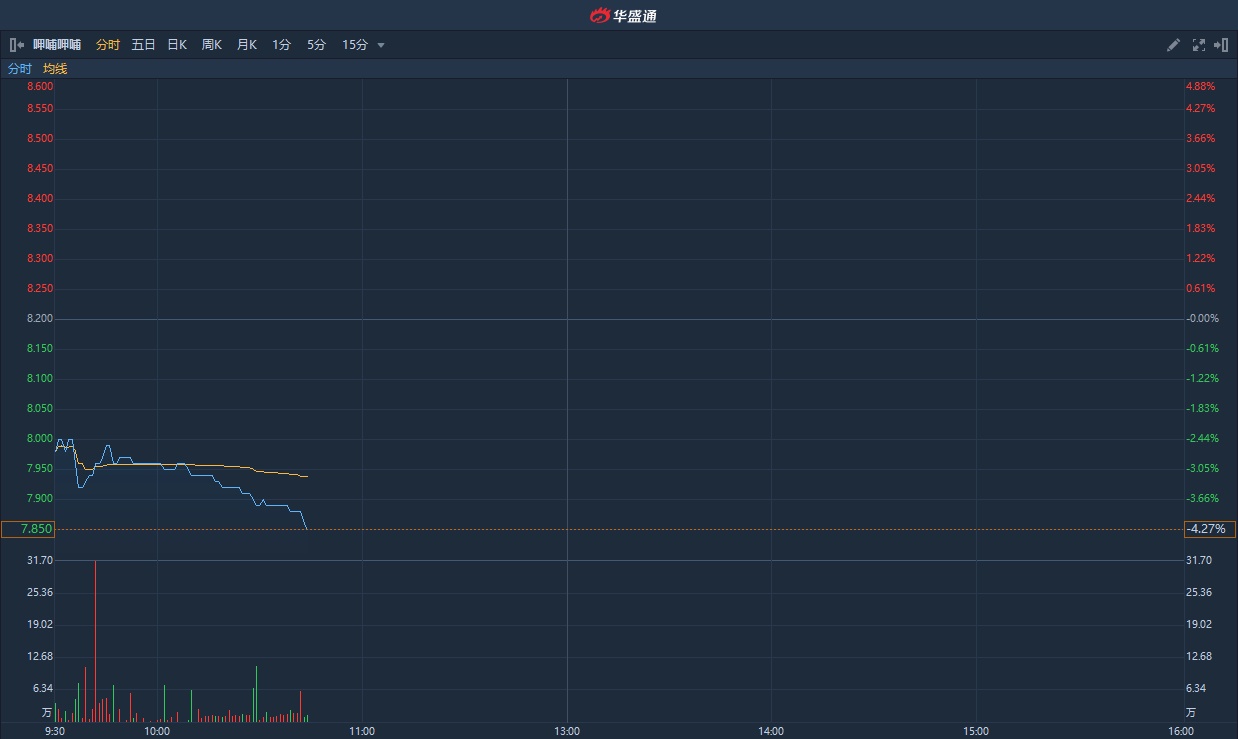 智通财经APP获悉,呷哺呷哺(00520)近日发布盈利预警公告,预期截至2019年12月31日止年度公司拥有人应占净利润较截至2018年12月31日止年度有显著减少。该股今日随市下跌,截至发稿,跌4.27%,报7.85港元,成交额1391.74万港元。