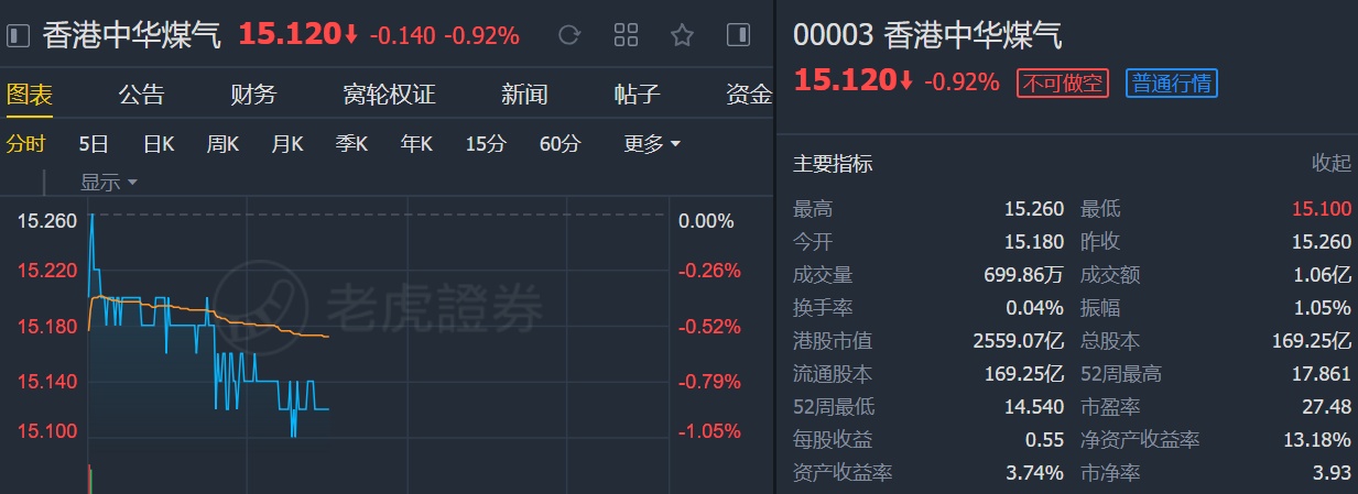 该行下调对煤气股份目标价,由16.3港元降至14.5港元,评级维持“与大市同步”。该行预期,煤气于香港、内地、新能源及物业四个业务块板今年的盈利将受压,但并不认为集团具韧性的业务模式基本面有改变。