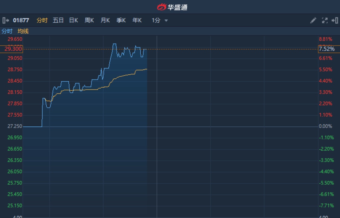 智通财经APP获悉,君实生物-B(01877)获方正证券维持“强烈推荐”评级,并称特瑞普利单抗顶峰销售额有望超过50亿元,新适应症研发进展顺利。截至11时58分,涨7.52%,报价29.3港元,成交额1156万。