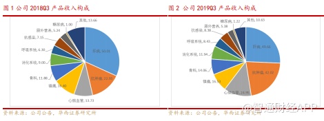 通过下图 1、2 对比可以看出,2019Q3 相比 2018Q3,公司抗肿瘤管线产品收入占比有了显著提升,未来抗肿瘤、呼吸管线将是公司强劲增长的两个领域。