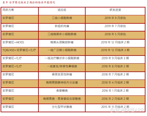 与 AK105(PD-1 单抗)、TQB2450(PD-L1 单抗)的联合用药也在快速推进。