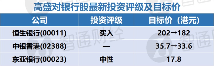 一、高盛对银行股最新投资评级及目标价