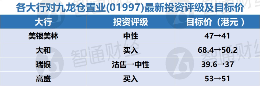 二、各大行对九龙仓置业(01997)最新投资评级及目标价