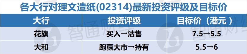 三、各大行对理文造纸(02314)最新投资评级及目标价