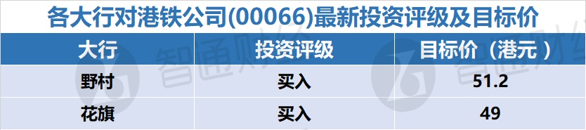 四、各大行对港铁公司(00066)最新投资评级及目标价