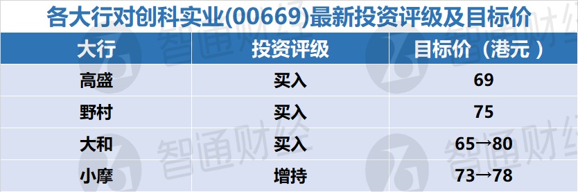 五、各大行对创科实业(00669)最新投资评级及目标价