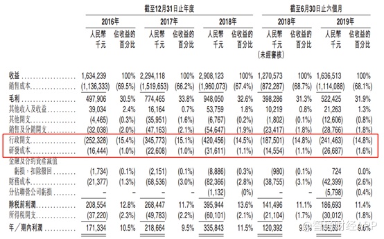 除了销售成本较高之外,康龙化成的费用支出比方面似乎也存在不合理之处。据招股书披露,康龙化成的行政开支占总收入比达到15%左右,而研发成本只有1%,直到2019H1才升至1.6%。智通财经APP发现,药明康德的行政支出费用比约10%,而研发费用占比在4%左右。