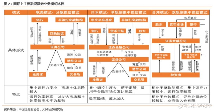 定性角度看信用交易:1)为市场提供双向交易机制,提高证券价格发现的效率;2)增强证券市场的流动性;3)改变证券市场“单边市”的状况,为投资者提供一种避险工具;4)杠杆率低,总体风险可控,为其他金融衍生工具提供经验;5)拓宽证券公司业务范围和盈利模式。发展模式上,形成了以美国市场为代表的分散信用模式,以日本、中国台湾为代表的集中信用模式,以及结合以上两者的混合模式。