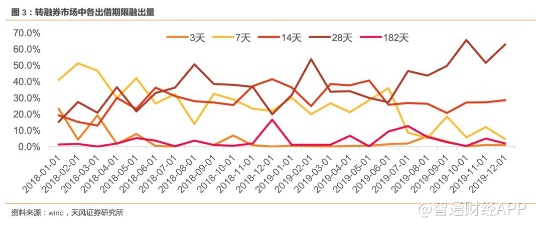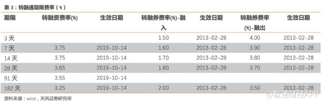 转融通是证券公司补充短期流动性及证券的途径之一。自2013年2月28日转融通业务正式推出之后,转融资方有7天、14天、28天、91天和182天五个期限品种,费率分别为3.75%、3.75%、3.65%、3.55%和3.25%,整体利率是高于证券公司发行短期融资券的费率(中信证券2020年度第三期短期融资券的期限是90天,票面利率是2.45%)。头部证券公司更加倾向于通过自筹的方式解决资金短缺问题。转融券有3天、7天、14天、28天和182天五个期限品种,转融券融出费率分别为4.00%、3.90%、3.80%、3.70%和3.5%,券商对于转融券的依赖程度大于转融资。