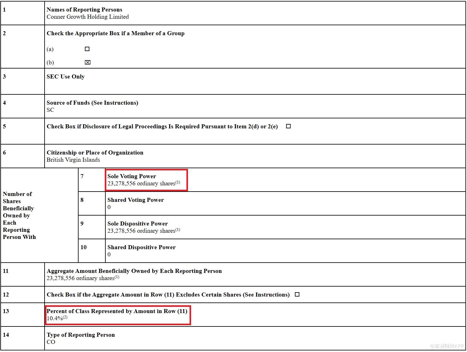 智通财经APP获悉,兰亭集势(LITB.US)3月4日向美国证券交易委员会披露的13D(即股东单独或合并持有5%以上公司股份)显示Conner Growth Holding Limited持有公司23278556股普通股,所持股份均具备唯一投票权和决定权,持股比例达10.4%。