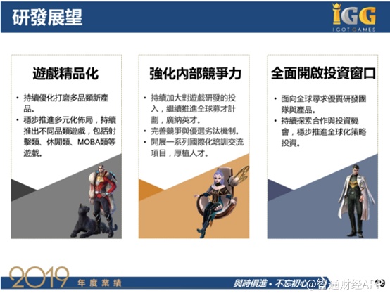智通财经APP获悉,2019年对于IGG是充满挑战、突破自我的一年。面对海内外游戏行业复杂多变的竞争环境,相对于短期的业绩压力,IGG更专注于培育及增强集团的研发实力及产品竞争力。