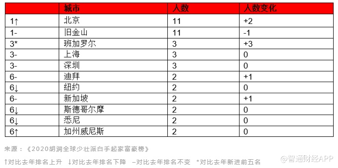从居住城市看,北京新增2位,首次与旧金山并驾齐驱,成为全球最成功80后企业家之都,都有11位。印度的班加罗尔升至第三名。