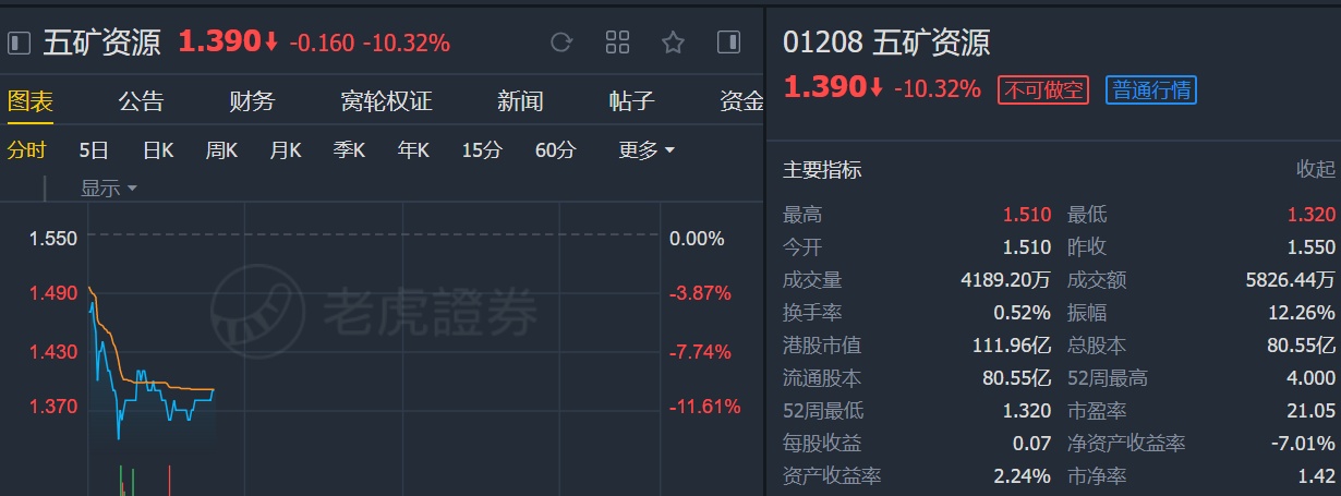 该行表示,集团对铜价有高杠杆,但营运风险及杠杆资产负债表相对较高,在股价回调后,变得不昂贵,但考虑到风险因素,重申对其“持有”评级,目标价1.75港元。