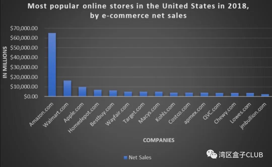 从市值上看,亚马逊几度突破万亿,而沃尔玛市值仅3000多亿,前者相当于后者的三倍。