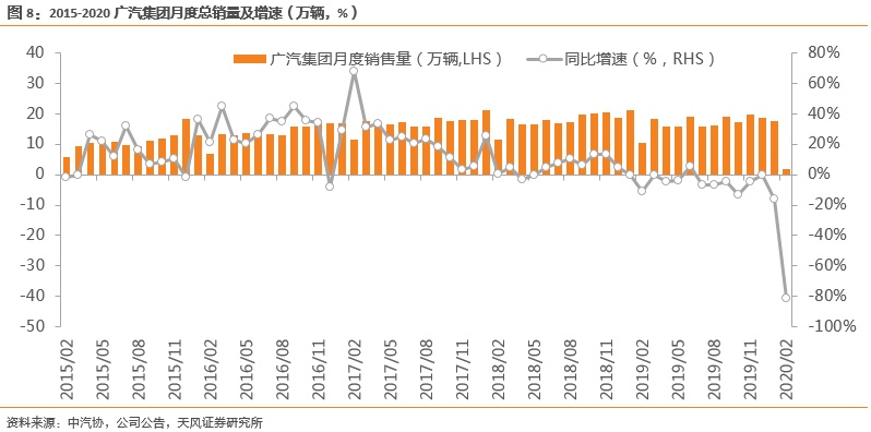 2月,受事件影响,上汽、广汽等车企销量均大幅下降。上汽集团2月销量4.7万辆,同比-87.0%,环比-88.2%。广汽集团2月销量1.9万辆,同比-81.1%,环比-89.0%。