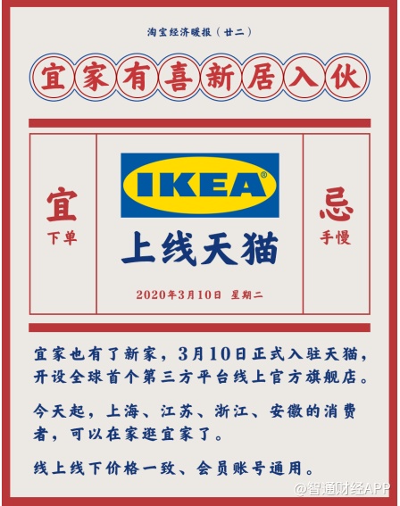 智通财经APP获悉,3月10日,宜家家居(IKEA)正式入驻天猫,开设全球首个第三方平台的线上官方旗舰店。作为卫生事件以来的第一个重大商业合作,宜家入驻天猫,也标志着商业世界的活力在回归,全球品牌在加速布局中国市场。