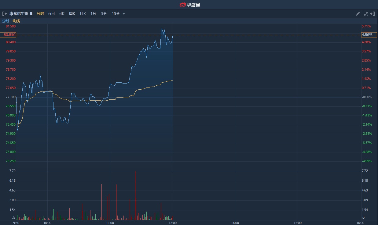 智通财经APP获悉,国家卫生健康委医药卫生科技发展研究中心主任郑忠伟近日表示,新冠肺炎疫苗正按照五条技术路线研发,根据国家相关法律法规规定,估计部分疫苗4月份有希望进入临床或应急使用。康希诺生物-B(06185)午前反弹逾4%,截至发稿,涨4.86%,报80.85港元,成交额7231.68万港元。