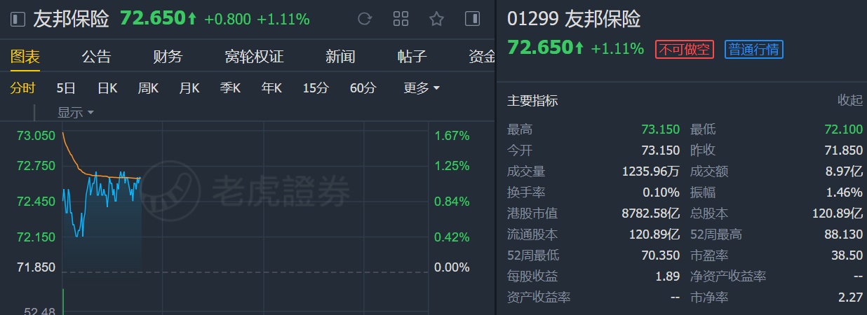 该行下调友邦目标价自77港元降至76港元,评级维持“跑输大市”,并预计友邦去年全年新业务增长9%,即下半年仅增长2%,派息有机会增至1.41港元。