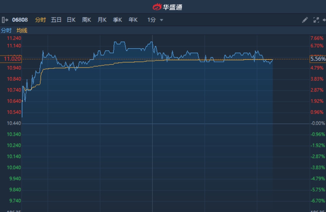 智通财经APP获悉,近日高鑫零售(06808)与Patinvest订立新代理协议及新分包协议。该股盘中一度涨超7%,创逾一年半新高,截至15时17分,涨5.56%,报价11.02港元,成交额2.056亿。