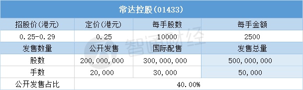 智通财经APP获悉,3月11日,常达控股(01433)配售结束。配售招股价区间为0.25-0.29港元,最终定价0.25港元,每手2500港元。