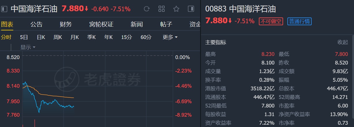 该行下调对中海油股份评级,由“跑赢大市”降至“跑输大市”,目标价由16.2港元大幅下调至7港元。