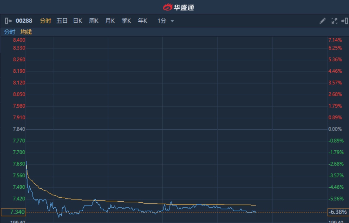 智通财经APP获悉,万洲国际(00288)将于本月24日发布年度业绩。该股盘中挫逾6%,跌破所有均线,截至14时41分,跌6.38%,报价7.34港元,成交额4.534亿。