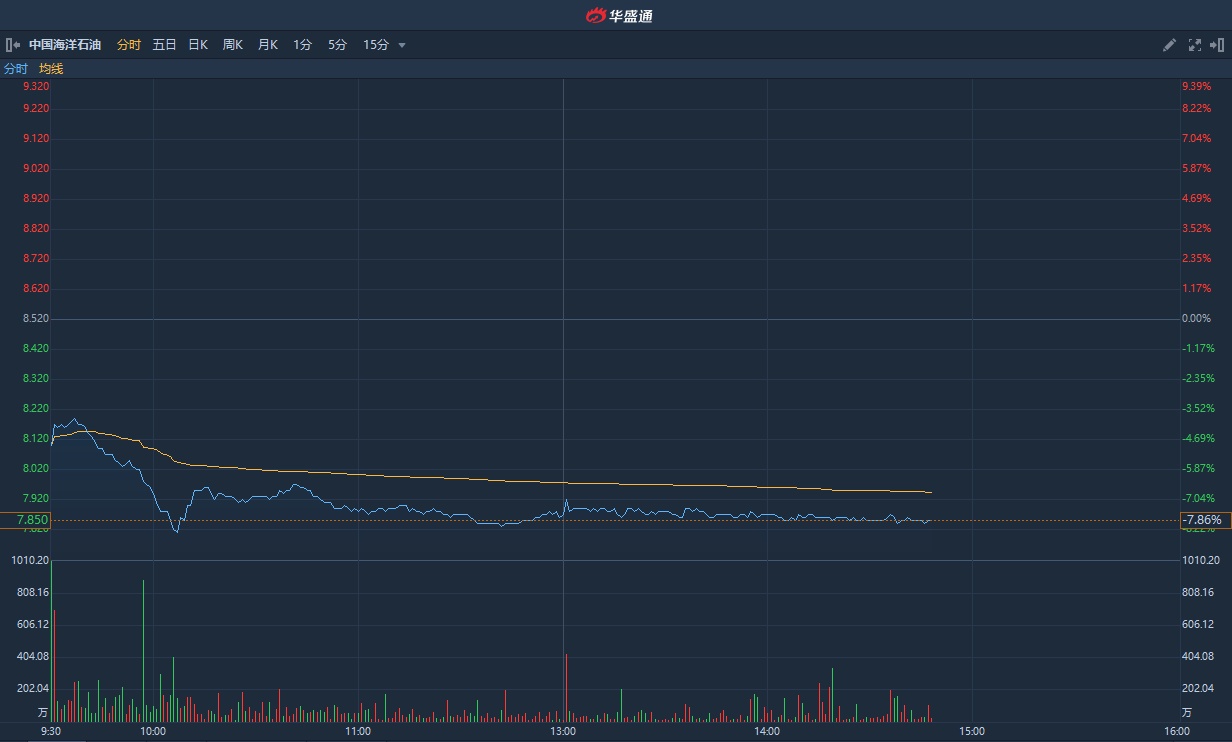 智通财经APP获悉,大和发布研报称,维持对布兰特油价今年处每桶40美元的预测,由于不明朗及波动性提升,该行将中海油(00883)目标价相应由9.5港元降至8.9港元,评级维持“持有”。截至发稿,中海油跌7.86%,报7.85港元,成交额15.63亿港元,领跌蓝筹。