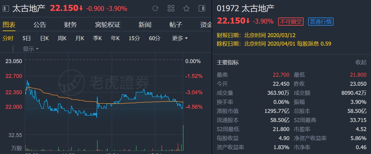 该行表示,集团去年全年每股派息0.88元,同比增长5%,派息在现时艰难经营环境下有惊喜,故维持对太古地产“买入”评级及目标价29.3港元。