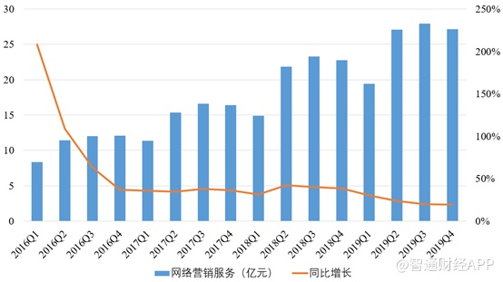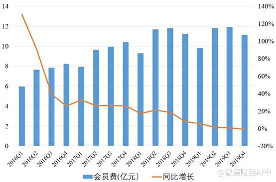 但是全年营收增速呈现连降趋势,较2018年30.48%的增速几近“腰斩”,这主要是因为会员服务收入的零增长甚至负增长,以及在线营销服务营收增速的不断下滑。智通财经APP观察到,2019Q4会员服务收入11.12亿元,同比下降0.9%,首次出现负增长;在线营销服务收入27.14亿元,同比增长19.3%。