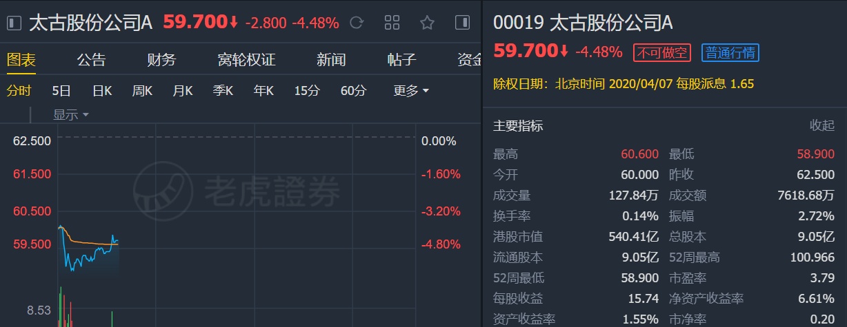 该行称,现时太古现价较每股资产净值折价约40%,已大部分反映了不利因素。