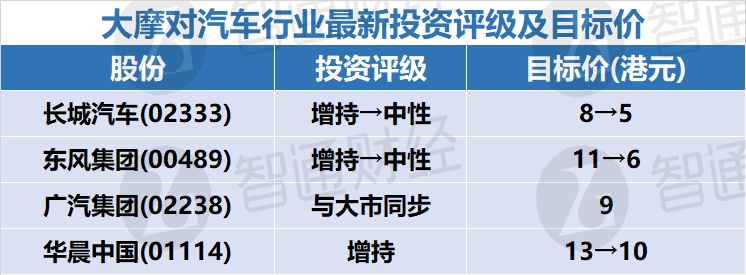智通财经APP获悉,大摩发布报告称, 预计内地需求及刺激,下调汽车行业前景由“吸引(attractive)”降至“中性(in-line)”。