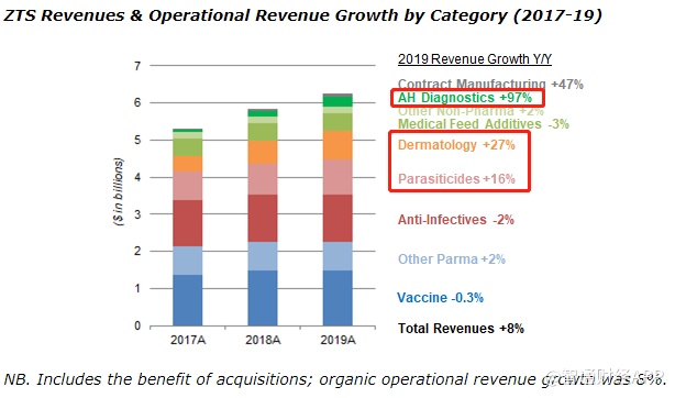 整体来看,公司2019财年结构性增长驱动力保持完成,猫狗、寄生虫以及皮肤药品的表现较为强劲。同时,在诊断业务及鱼类市场的进展良好,虽然初始规模较小,没有作出实质性的贡献,但未来的发展依然可期。